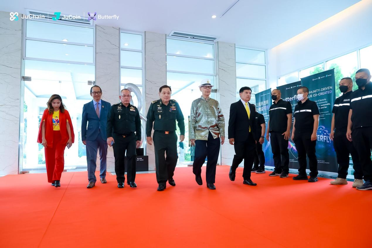 本次峰会吸引了来自全球多个国家与地区的嘉宾出席,其中包括殿下 奥拉提瓦冠亲王、殿下 旺猜纳瓦拉亲王、阿批猜将军以及 瓦查林苏瓦琳将军。四位泰国军政要员不仅见证了 Butterfly 协议的发布,更在致辞中深入探讨了该协议的“边缘算力×无损机制”创新模式,如何为区域数字基础设施注入强劲动能。他们一致表示,将携手JuChain与Butterfly,共同构建一个开放、可信、可持续的“蝴蝶生态”,助推东南亚乃至全球数字经济实现跨越式发展。