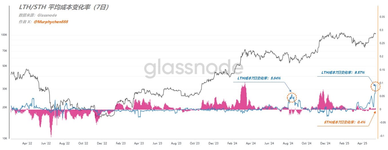 这一现象相当罕见,一般而言,LTH 多为「钻石手」,倾向长期持有、不轻易出场,因此平均成本变动通常稳定。如今出现剧烈波动(7 日成本变化率高达 9.57%,远超过 STH 的 0.4%),值得思考背后原因。