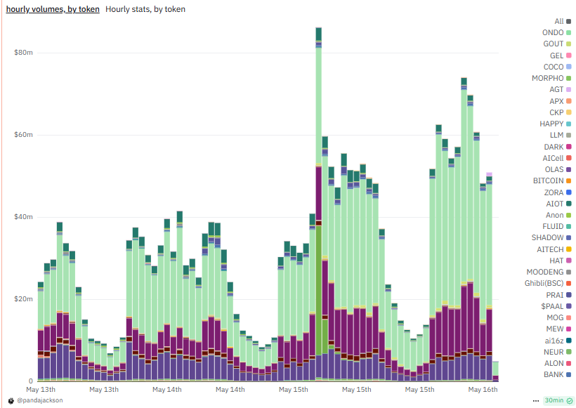 对项目方来说,现在上线 Binance Alpha 又变成了极好的流量曝光机会。同时可以作为“刷分标的”来获得长期的流动性,$ZKJ、$B² 等热门资产的交易量持续增长。