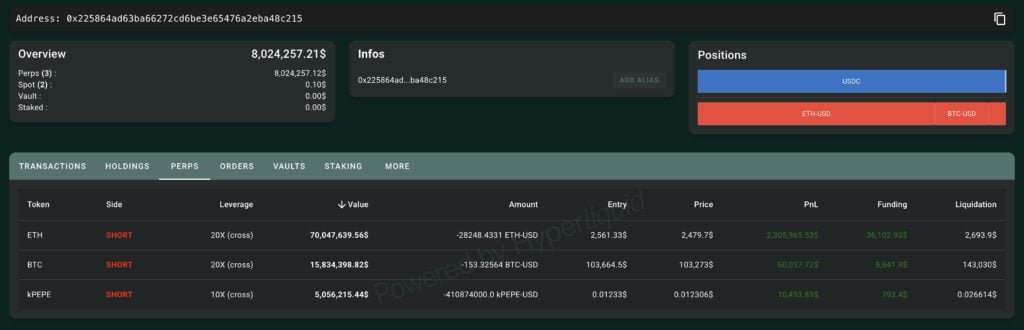 市场胶著》多隻巨鲸已在 Hyperliquid 高杠桿𫔭仓:看多BTC、看空ETH?