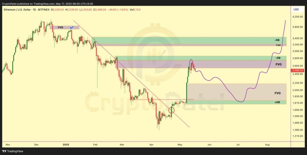 如果以太坊能在此支撑位快速饭谈,Patel 预测其价格未来可能会上涨至 4,000 美元至 5,000 美元之间。