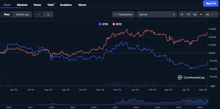 以太坊正在苦苦挣扎,这是毋庸置疑的。自2024年12月以来,每当市场情绪转变导致加密市场整体下跌时,只有比特币能够反弹到之前的价位并突破,而以太坊却下跌后几乎无法回到原点。