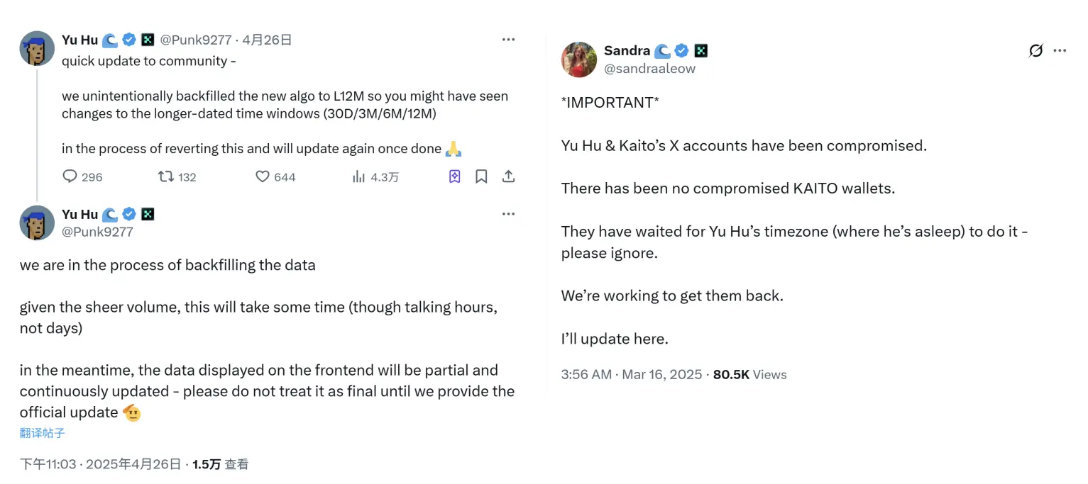 除了机制争议,Kaito 团队近期在运营层面也出现了一些小插曲。