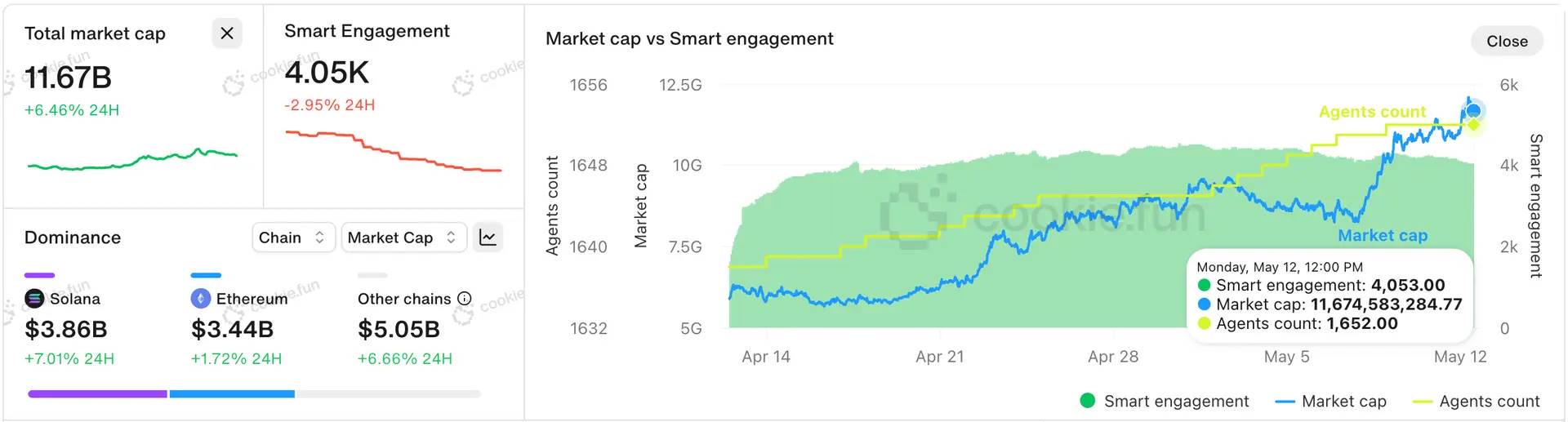 过去一年中,我们见证了一个AI代理(如 Truth Terminal )配备了自托管钱包,创建了一个互联网原生宗教,并推出了一个市值超过9.5亿美元的meme币,成为第一个AI代理“百万富翁”。根据 cookie.fun 的数据,目前大约有1600多个AI代理,其总市值超过110亿美元。总体而言,我们看到AI代理(及相关“代理代币”)迅速占领社交渠道,其中一些具有实际效用,并将链上 AI 从概念转变为蓬勃发展的现实。特别是,以下三个相互关联的概念正日益受到关注: 链上 AI 代理、链上 AI 应用和代理化商业 。