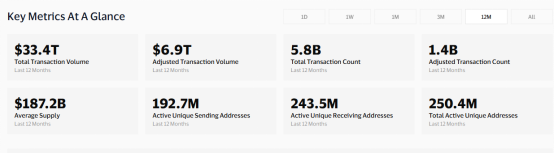 发展至今,全球稳定币市值已然高达2438亿美元,而根据Visa提供的面板数据,在过去12个月中,稳定币的总交易量达到了33.4万亿美元,总交易次数来到了惊人的58亿次,活跃的唯一地址总数也达到2.5亿。