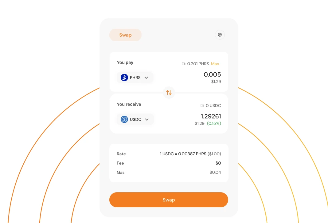 如上图,用户目前可使用 PHRS 兑换测试网上的 USDC、USDT 资产,输入少量 PHRS 后点击“Swap”即可。