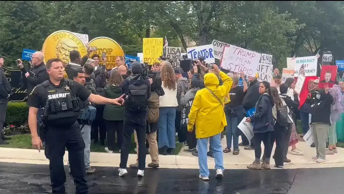 在参与抗议的人群中,还有来自俄勒冈州的民主党参议员杰夫·默克利,他在特朗普高尔夫球场入口处大喊:「这是加密腐败俱乐部」,并称这场晚宴是「腐败届的珠穆朗玛峰」。