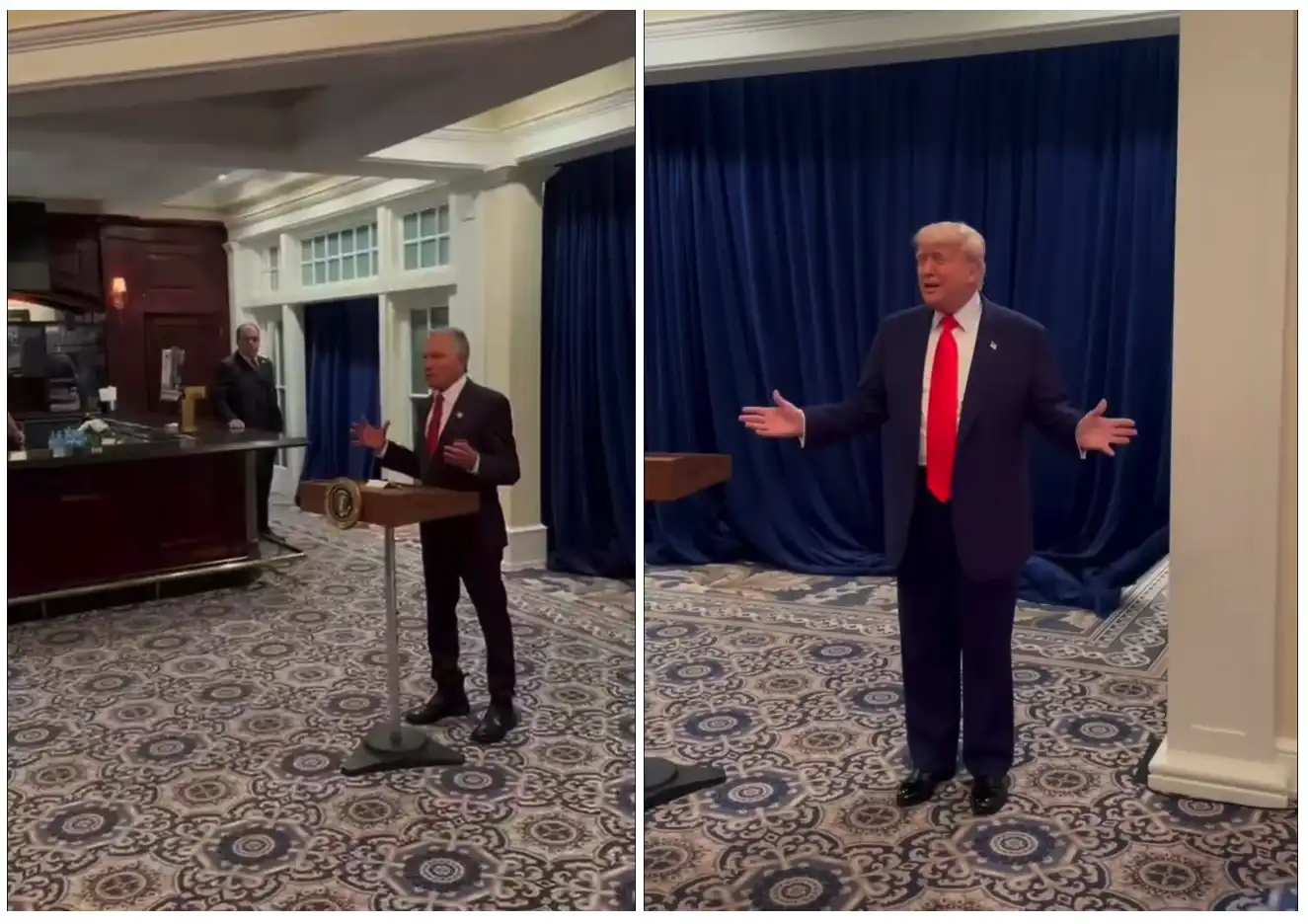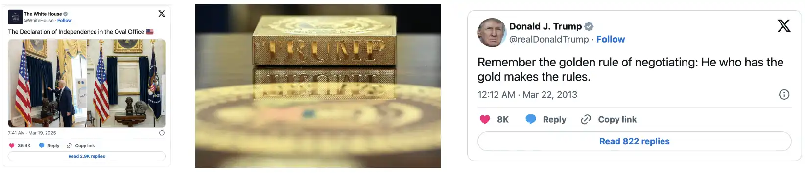 白宫内饰;特朗普金色镇纸;特朗普账号,图源来自 X