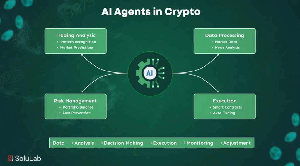 – 更快的事件驱动交易:AI 代理全天候监控链上订单簿和社交情绪,毫秒级执行交易,远超人工下单速度。