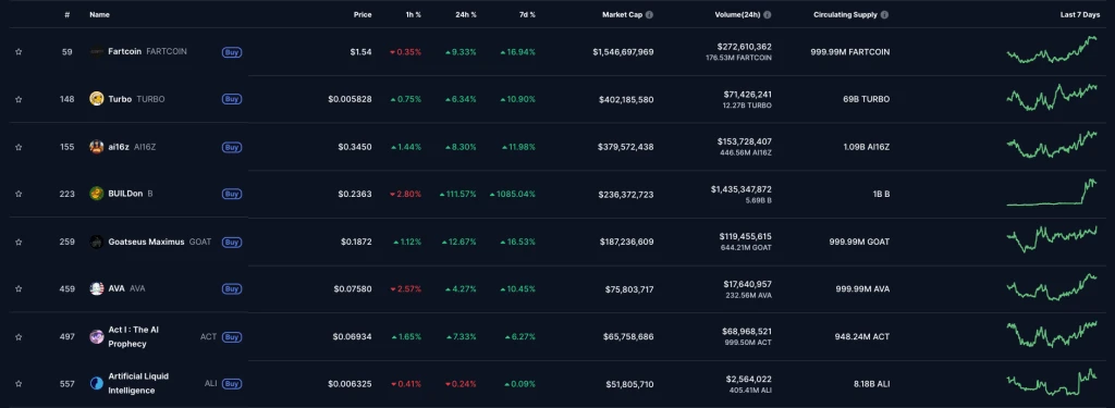 Image Credit: AI Memecoins Ranking (CoinMarketCap)