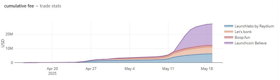 Believe 日交易费用,在 Solana 新发行平台中排名第一