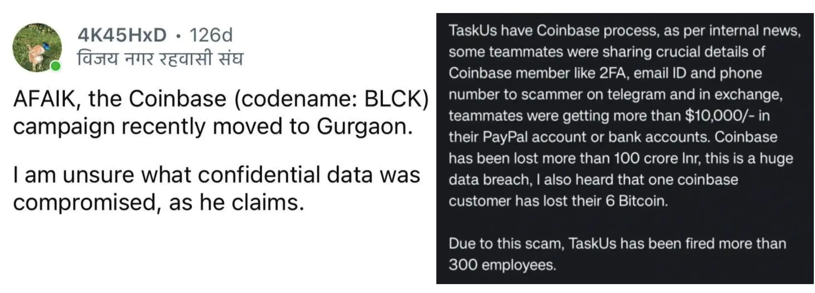 Taylor Monahan 还 直接揭露 :Coinbase 大规模外包了客服工作给印度的第三方服务商 TaskUs。早在 2025 年 1 月 11 日,Coinbase 大规模裁员开除了 300 多名印度客服,理由就是「盗窃」与「违规操作」。随后办公室迁到古尔冈城市,但内部数据泄露依然频繁发生,于是 3 月和 4 月又发生了新一波的「裁员」。