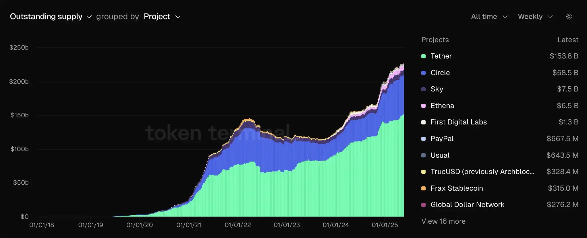 数据来自 tokenterminal,现有各大稳定币占比