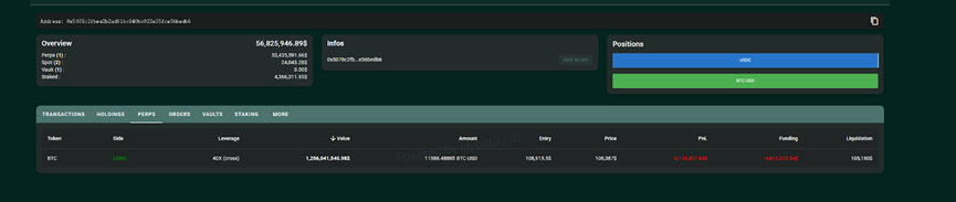 他在Hyperliquid上的交易目标出奇地简单,主要集中在比特币以及PEPE、TRUMP和FARTCOIN等少数几种模因币 。例如,2025年4月6日,他以均价94292美元、40倍杠杆做多比特币;当比特币价格从94000美元涨至100000美元时,其浮动盈利达500万美元 。而他持有的PEPE 10倍杠杆多头仓位,浮动盈利更是高达2300万美元 。TRUMP和FARTCOIN代币的交易也分别贡献了约500万至557万美元和430万至515万美元的利润 。