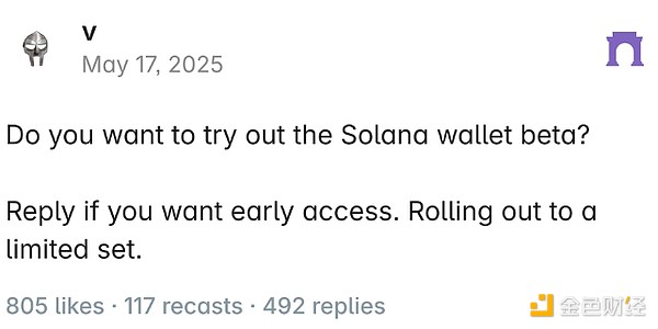 首先,Farcaster 目前正在开发新的 Solana Solana 钱包测试版,并将很快全面推出。它的到来应该会成为 Solana Mini Apps 领域的一个显著催化剂。