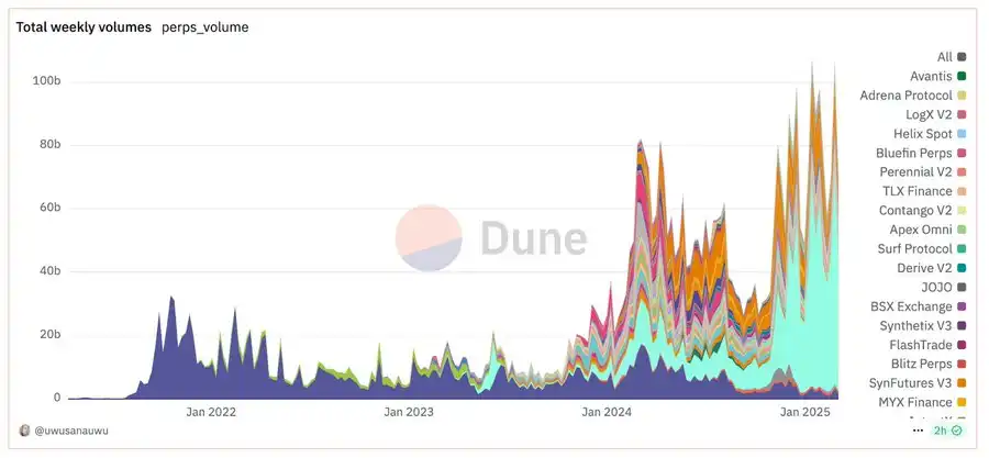 其结合了 CeFi 的高性能和 DeFi 的透明度,已占据链上永续合约交易量的 64.71%,证明了一个成功的社区驱动方法如何推动 DEX 挑战即使是最大的中心化平台。