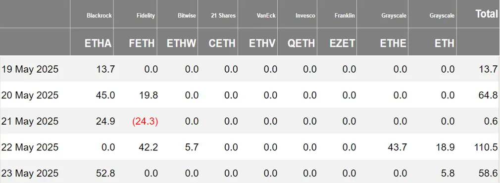 上周,美国以太坊现货 ETF 连续五日净流入,总净流入 2,48 亿 美元,总资产净值达 91.2 亿美元。