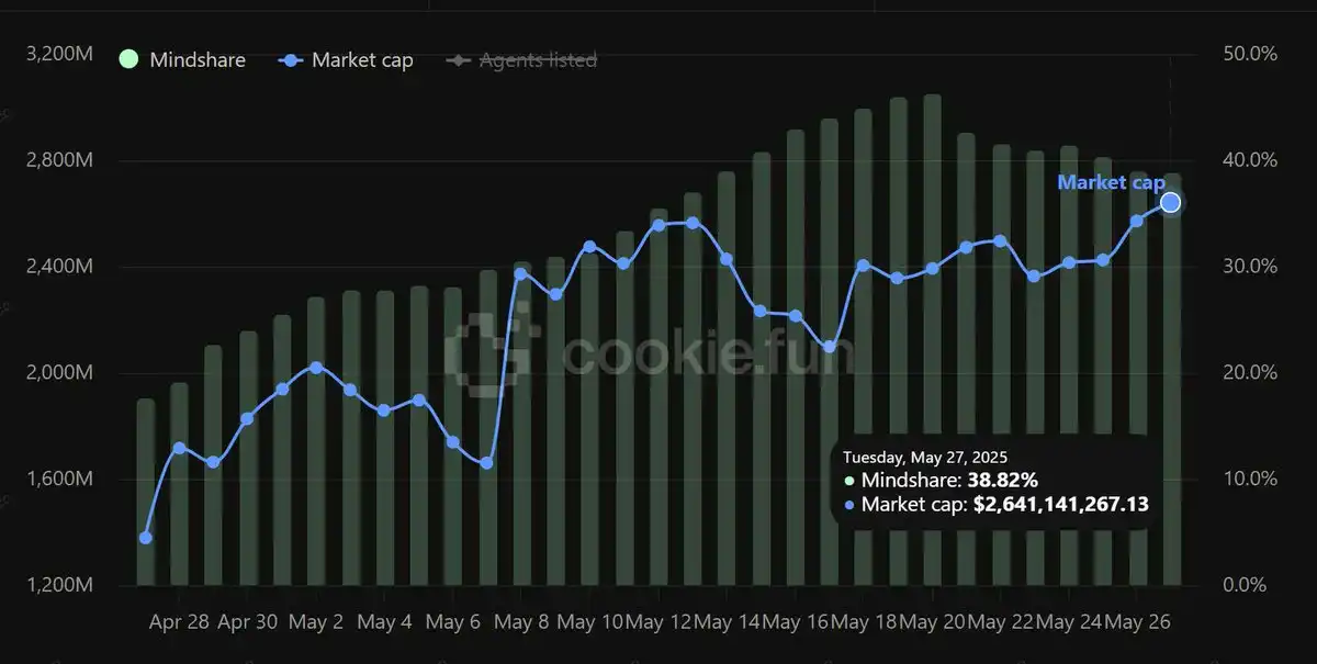 • Virtuals 市场关注度(Mindshare):38.82%(+0.22%)