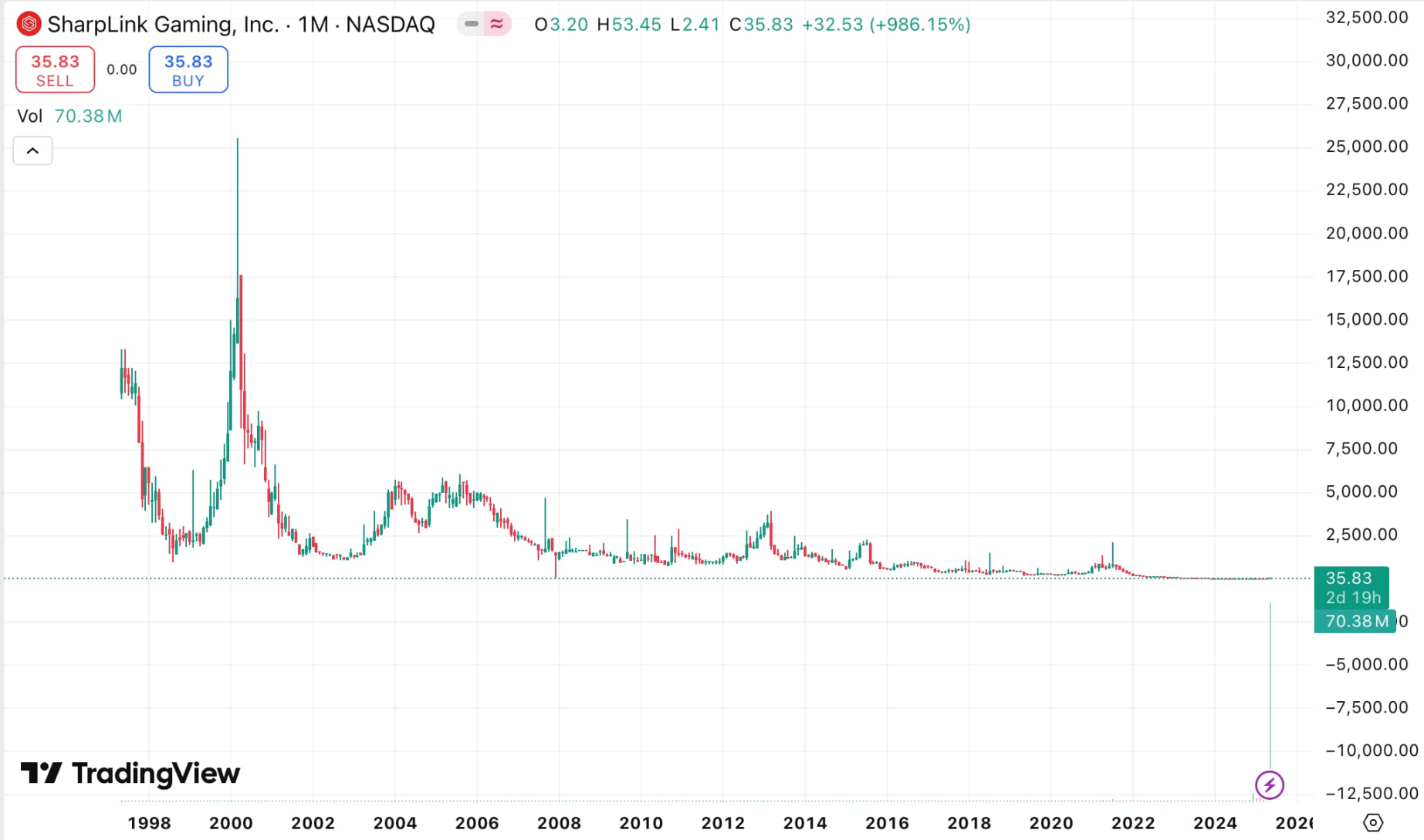 SharpLink Gaming 的股价波动性也不容忽视。在此次公告之前,其股价在 2025 年 5 月 23 日收盘时仅为 6.72 美元(市值不到 470 万美元), 5 月 27 日收盘时涨至 35.83 美元(2500 万美元市值),涨幅达 433.18% 。SharpLink Gaming 历年以来的大幅股价变动可能与如上所述的公司合并有关,中途也出现过被纳斯达克濒临退市的情况。能否将资金转化为实际业务增长、扭转亏损,仍是投资者关注焦点。