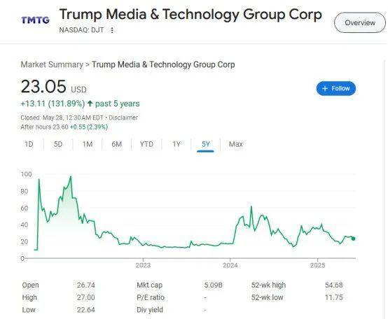 这里需要提及的是,尽管集团收入不行,但从2024年开始,该集团的股价,表现却是相当可以。虽然在上市首日最高冲至78美元后续持续滑落,但即便到如今,其股价也仍有23.05美元,总市值达到了50亿美元,对一个常年亏损的社媒企业而言,已然非常亮眼。原因也颇为简单,该集团由于有总统深度绑定的关系,间接成为了总统概念股,总统的一言一行,均反映在股价上。若观测股价走势,在去年11月,特朗普成功胜选后,集团股价可谓迅速增长,并于2024年11月28日达到了61.96美元的高度,今年尽管表现相对平平,但在解放日当天也撑住了17美元的底部,未再回归至2023年的12美元,韧性尚佳。