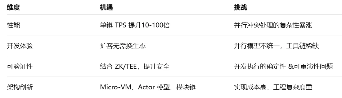 首先从机遇来看,最直接的收益便是“应用天花板的解除”。当前的 DeFi、游戏、社交应用大多受限于状态瓶颈、Gas 成本与延迟问题,无法真正规模化地承载链上高频交互。以链游为例,真正具备动作反馈、高频行为同步与实时战斗逻辑的 GameFi 几乎不存在,因为传统 EVM 的线性执行无法支持每秒数十次状态变更的广播确认。而在并行计算支持下,通过交易 DAG、合约级异步上下文等机制,可以构建高并发行为链,并且通过快照一致性保障确定性执行结果,从而实现“链上游戏引擎”的结构性突破。同理,AI Agent 的部署与运行也将因并行计算获得本质提升。过去我们往往将 AI Agent 运行在链下,只将其行为结果上传至链上合约,但未来链上可通过并行交易调度,支持多个 AI 实体之间的异步协作与状态共享,从而真正实现 Agent on-chain 的实时自治逻辑。并行计算将成为这种“行为驱动型合约”的基础设施,推动 Web3 从“交易即资产”走向“交互即智能体”的全新世界。