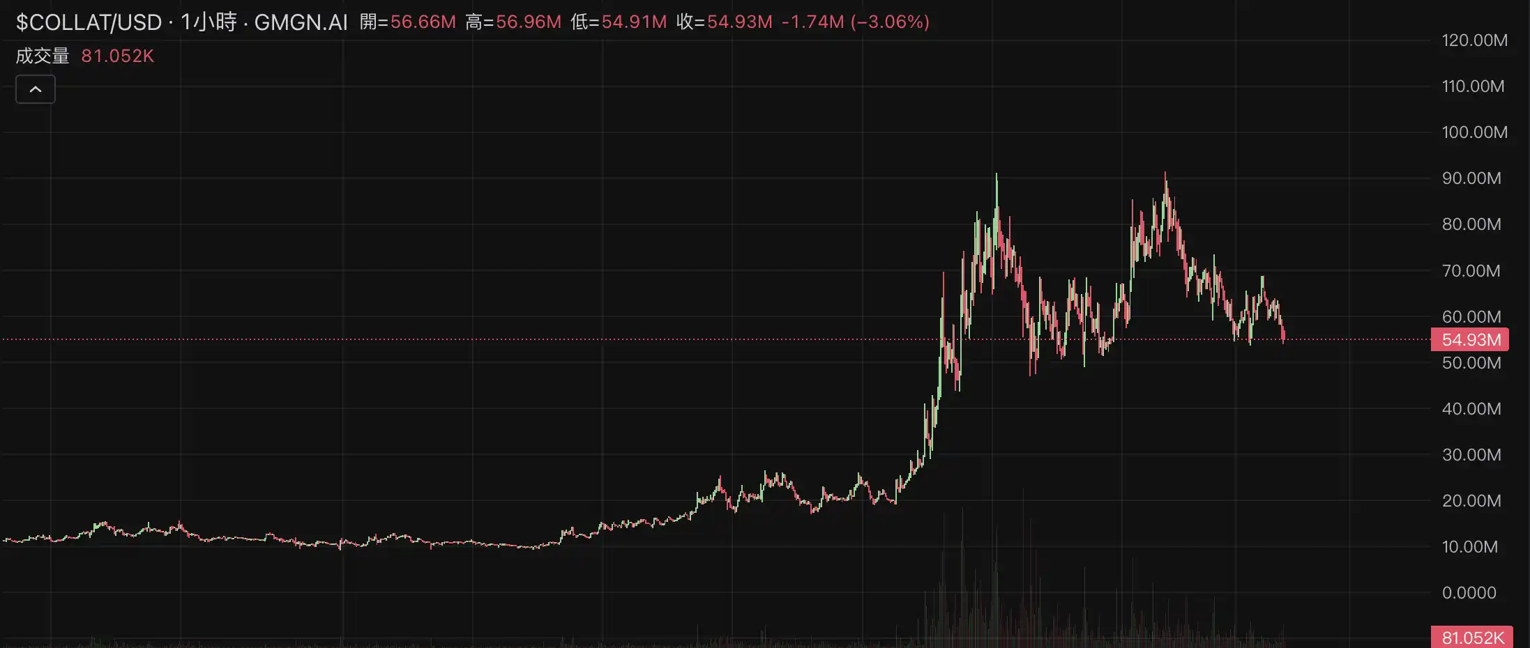 「Internet Capital Markets」这个在 Solana 基金会主席 Lily Liu 布道的概念在 Believe 爆火之后在 Solana 上变得火热,而另一个「ICM」概念的 RWA 项目 Collaterize 代币 COLLAT 市值突破在近日突破 9000 万美元,现回调至 5400 万美元,自一月份发射以来于 900 万美元市值左右持续盘整,终于在 5 月 18 日 爆发,Solana 联创之一 Toly 转发了 Collaterize 的 App Demo 视频让代币暴涨,也让市场重新关注起了这两个微软前员工的 RWA 项目。