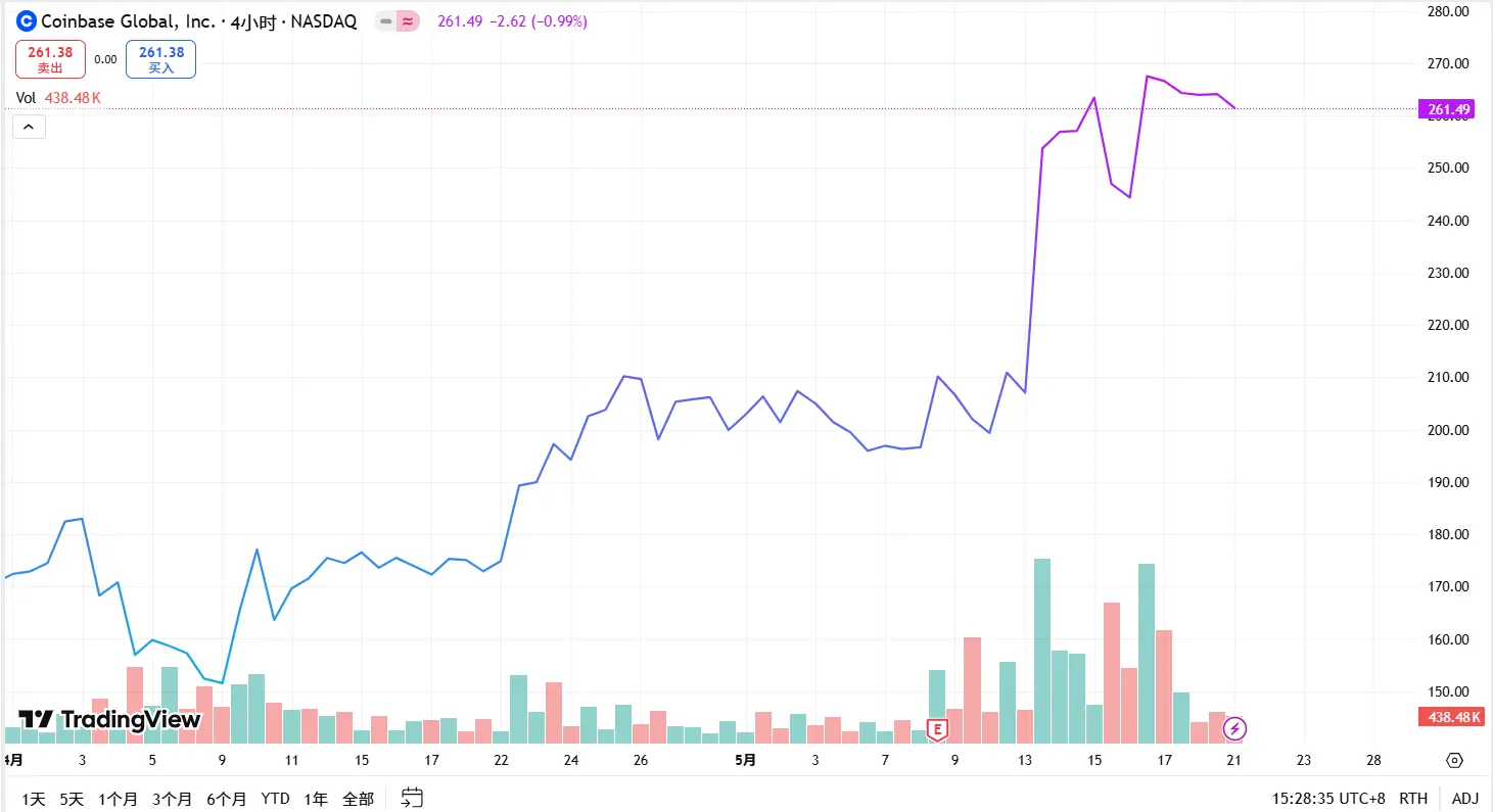 上市时间 : 2021 年 4 月 14 日 | 交易所 : NASDAQ | 股票代码 : COIN | 月涨幅: 28.83%