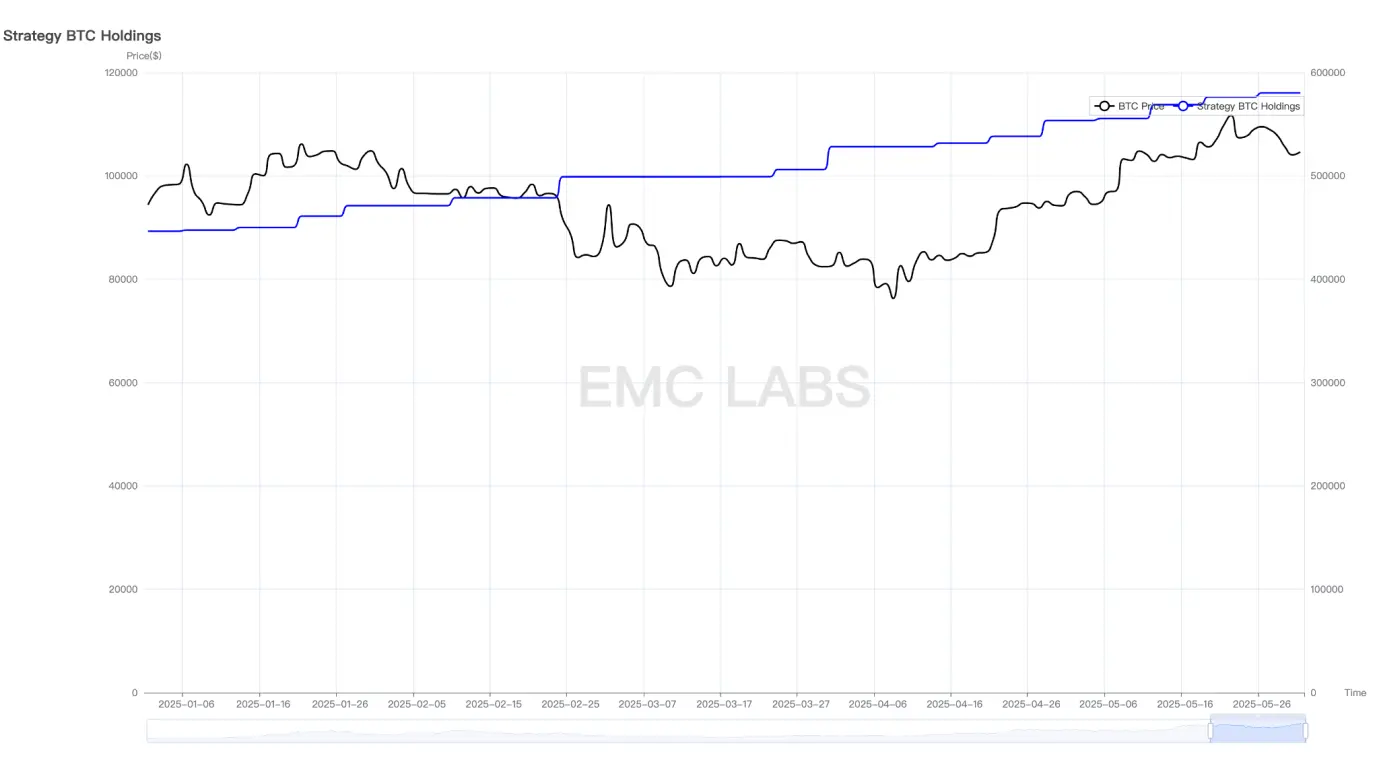 基于纳入纳斯达克100的Strategy公司的公告数据,其在2025年以来增持133850枚,其总持仓已达到580250枚。