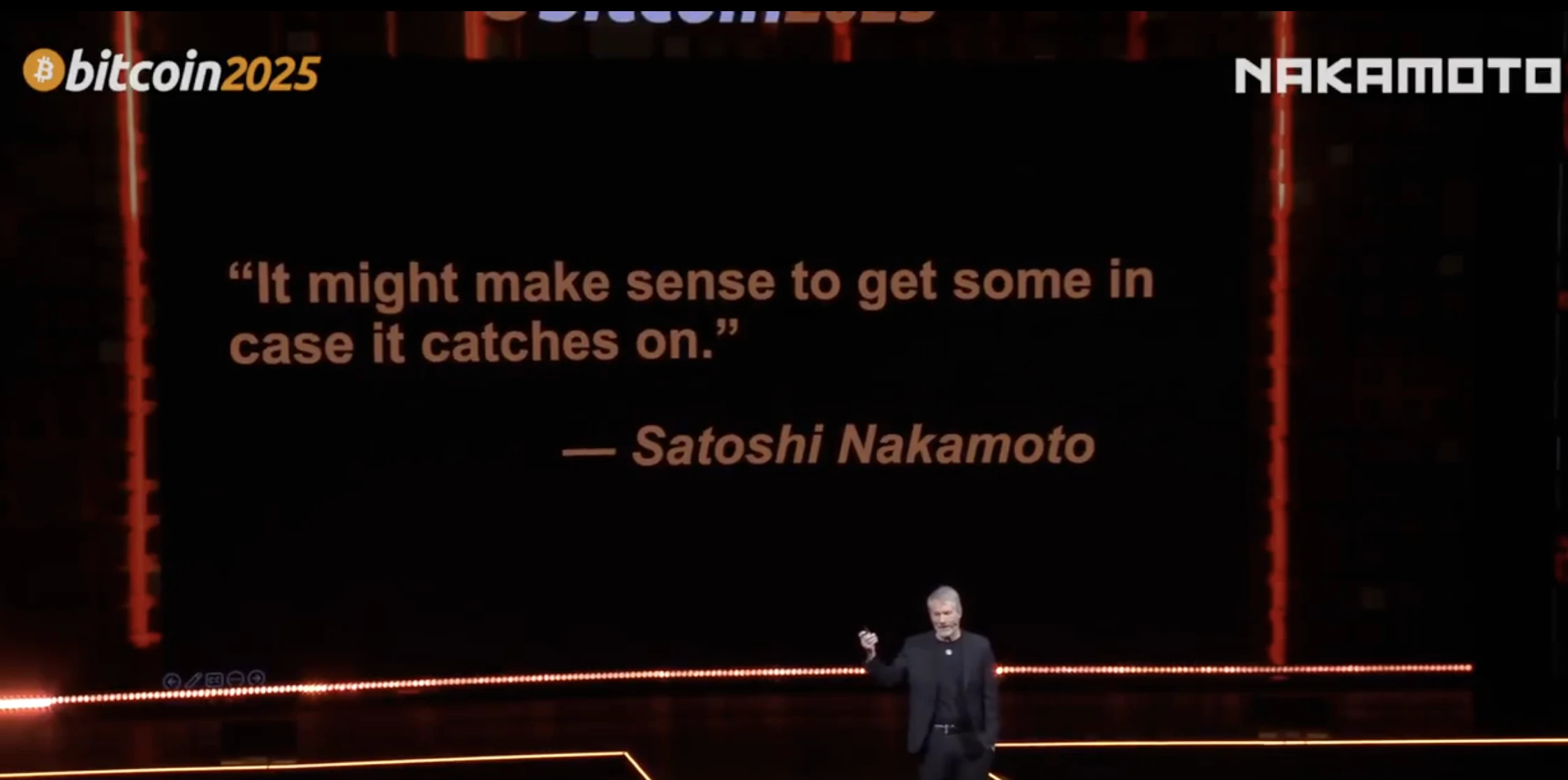 我很高兴今天在 Bitcoin 2025 与大家见面,高兴首先是因为这篇演讲是说给大家听的。过去几年我去过世界各地谈论比特币,也告诉过很多国家为什么需要比特币,也向机构投资者、董事会、公司和首席执行官说明需要比特币的原因。