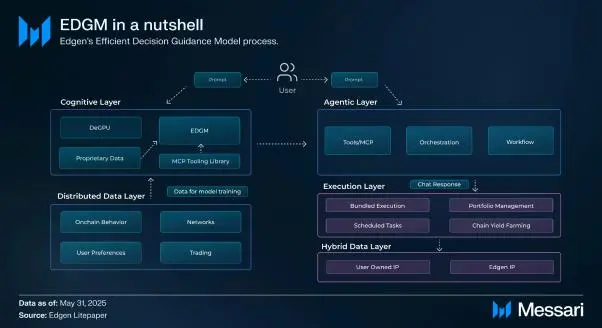 EDGM 作为一个轻量级推理引擎,能够智能检测用户意图, 自动匹配最合适的AI助手与模型协议工具,并 整合最相关的链上和社交数据。它在回复速度、准确度和信息相关性三个维度进行优化输出结果。用户只需 输入搜索意图(例如“分析BTC技术面走势Ⅱ 或“解析ETH当前上涨原因?Ⅱ ) , EDGM 就会自动解析并明确 用户需求,通过智能体系统动态优化处理流程,并持续自我改进。