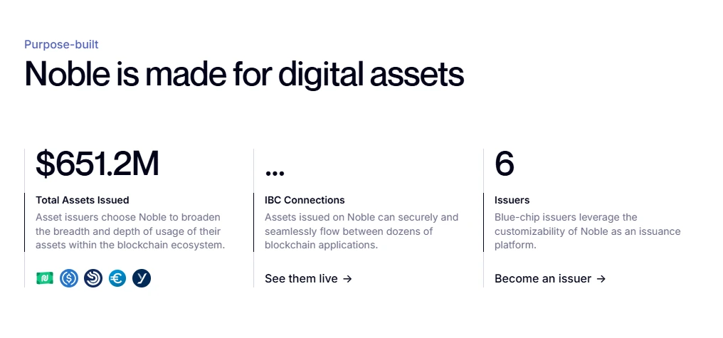 Noble 是 Cosmos 应用专用区块链专为原生资产发行而打造。Noble 将原生资产的效率和互操作性带入更广泛的 Cosmos 生态系统,并以 USDC 为起点。