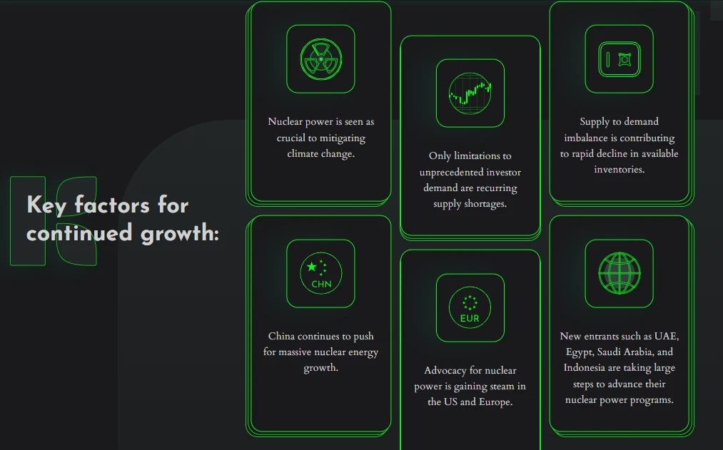 根据 Canaccord Genuity 2021 年 9 月的报告,全球铀矿总供应量约为 1.5 亿磅,按目前 45 美元/磅的价格计算,每年约合 67 亿美元。预计到 2035 年,铀矿供应量将增至约 2.5 亿磅,但需求仍将超过供应。