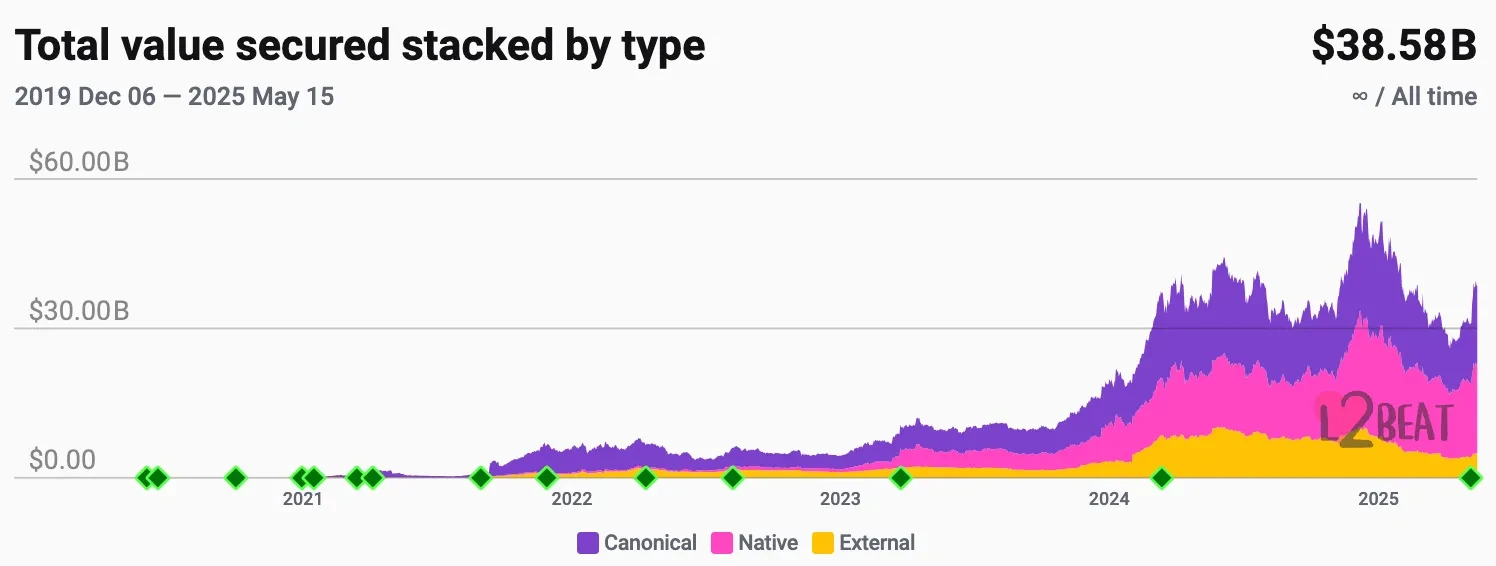 从技术供给角度看,以太坊是当前最安全、最去中心化的智能合约平台。通过验证桥(validating bridge)与数据可用性层(DA),以太坊可以将主链安全性“批发”给 Rollup,帮助它们构建自己的链,而不必重新搭建一套信任体系。