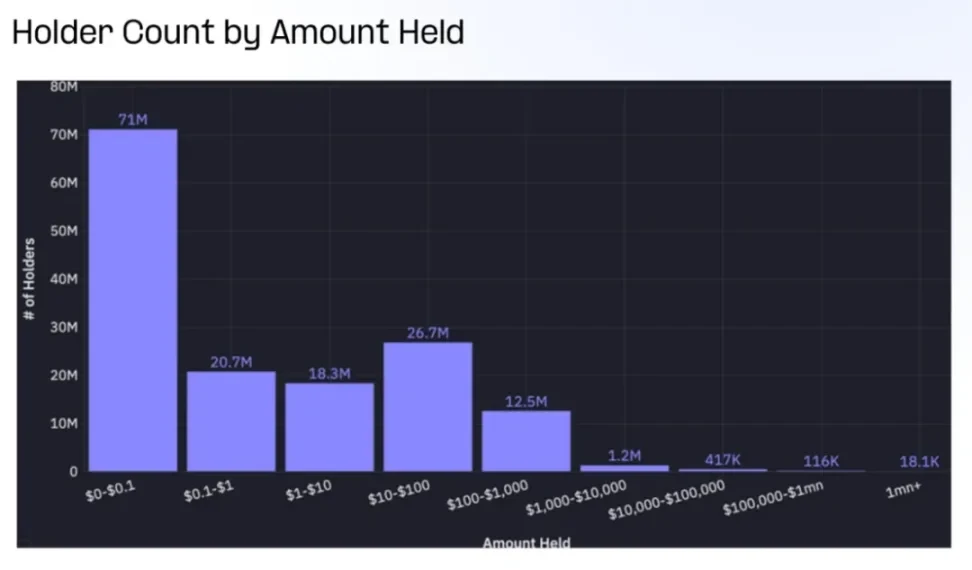 尽管未归属钱包数量庞大(超过 1.5 亿个),但绝大多数钱包的余额都微不足道。超过 60% 的未归属钱包持有的稳定币余额不足 1 美元,而持有超过 100 万美元稳定币余额的钱包不足 2 万个。