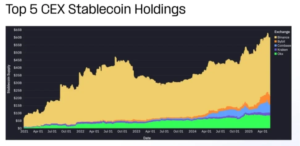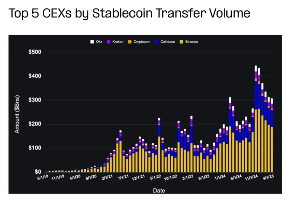 归属于中心化交易所 (CEX) 的稳定币交易量反映的是与充值、提现、交易所间转账和流动性操作相关的链上活动,而非内部交易、保证金抵押或费用结算。因此,最好将其视为用户与交易所互动的指标,而非总交易活动的衡量标准。