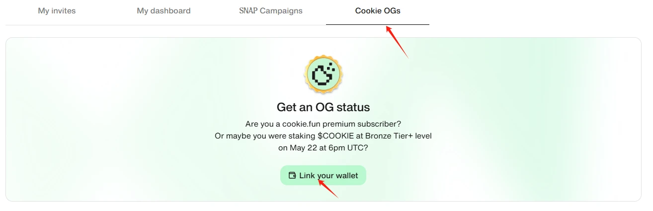 STEP 1. 绑定钱包(链接: https://www.cookie.fun/profile/cookie-ogs )。