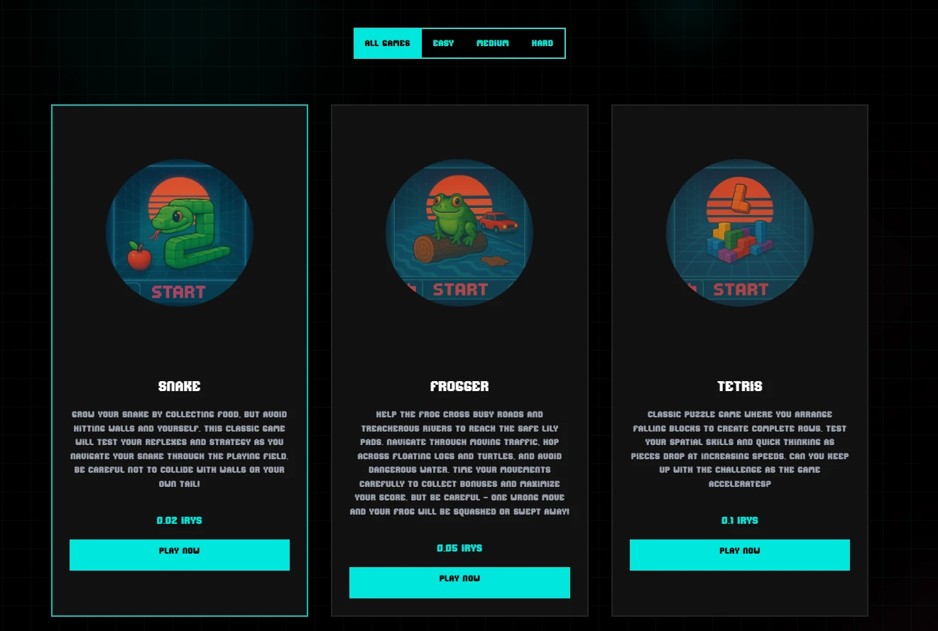 STEP 2. 参与平台测试游戏,获得更多奖励,目前有三款游戏可以参与(参与游戏需支付一点数量测试币,同时游戏结束后记得先提分数再领取奖励),还有两款游戏即将上线。