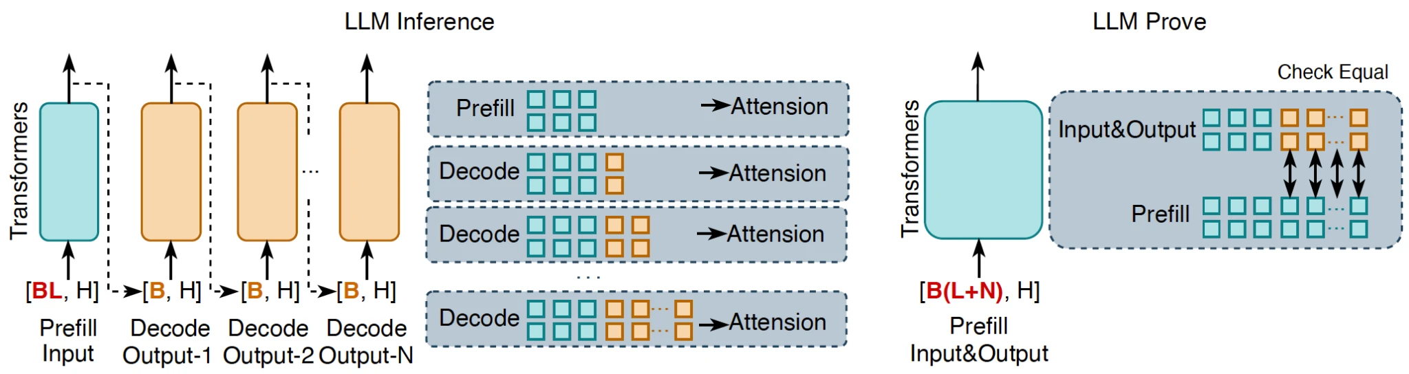图 3 :大规模语言模型(LLMs)计算的批量验证,其中 L 表示输入序列长度,N 表示输出序列长度,H 表示模型的隐藏层维度。