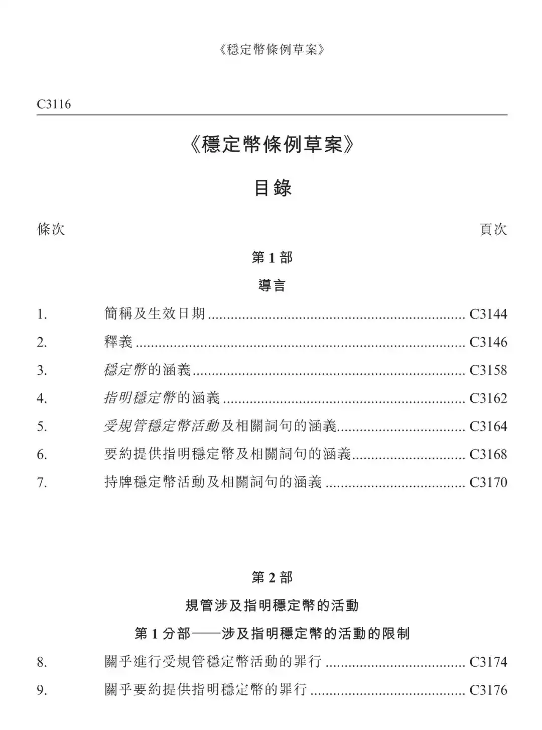 香港稳定币条例草案目录,该条例于 5 月 21 日香港立法会三读通过