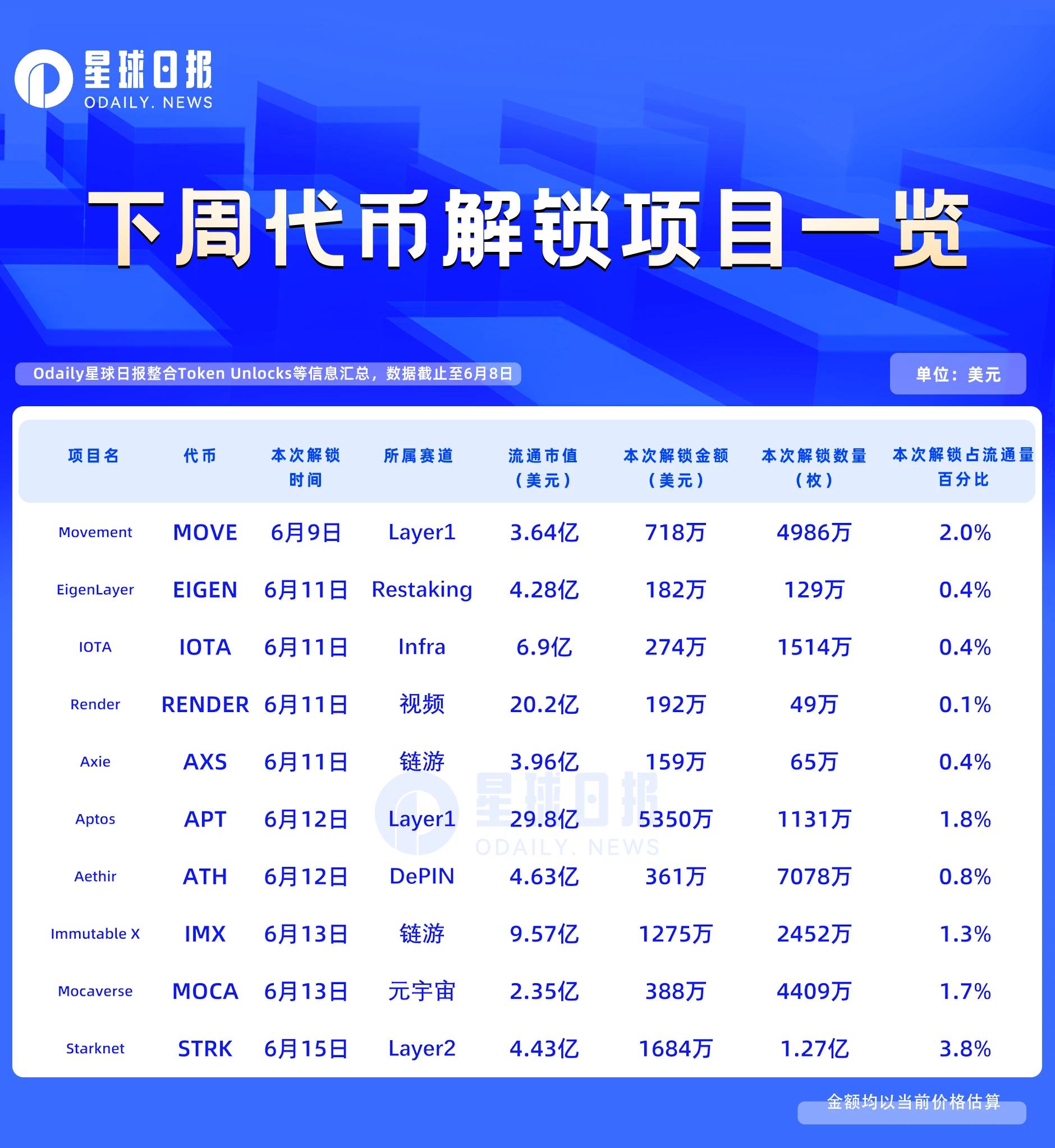 一周代币解锁:STRK解锁流通量3.8%的代币