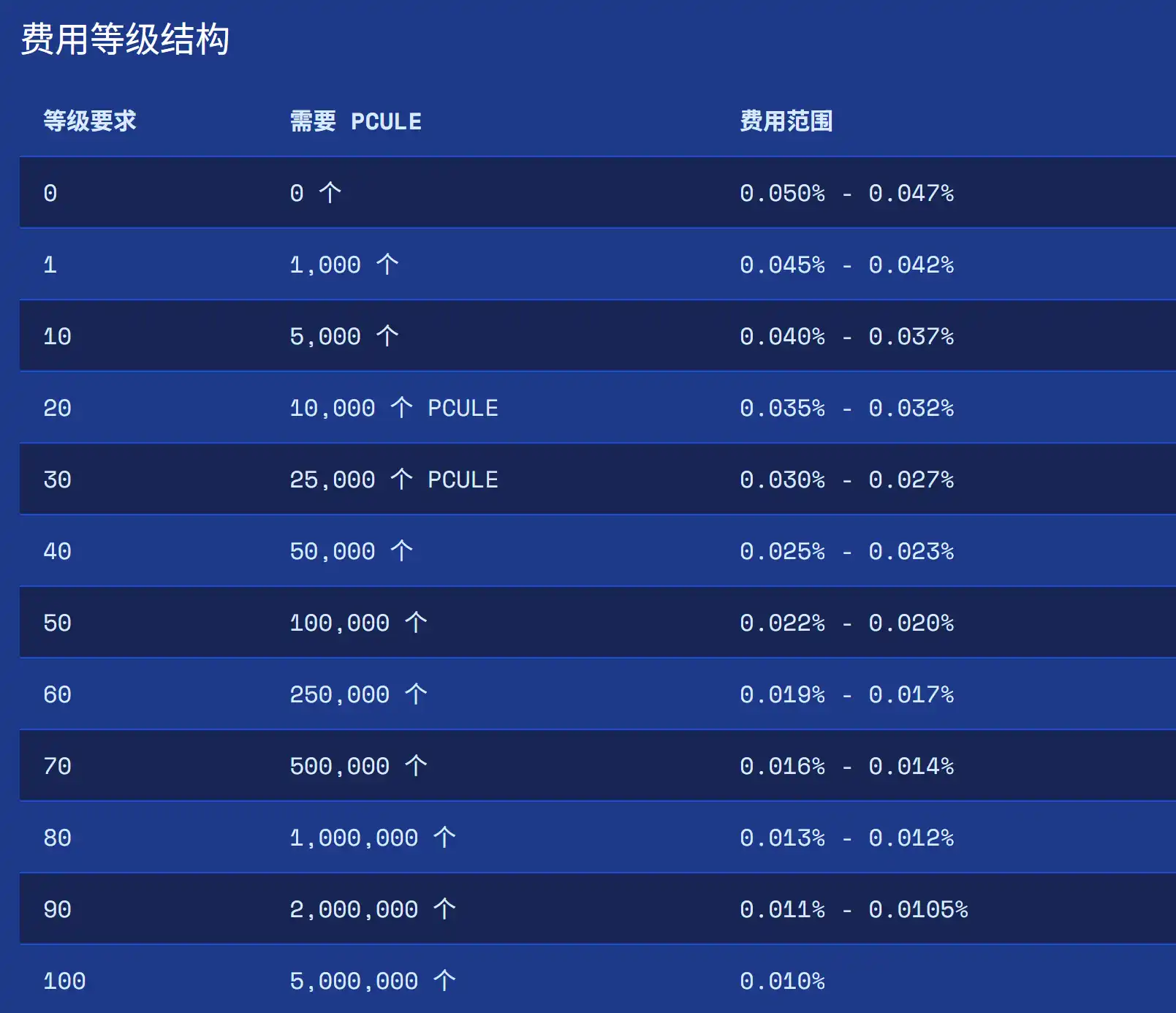 PCULE 是 Polycule 平台的原生代币,持有可享手续费折扣,从 0.05% 降至最低 0.01% 。此外,Polycule 每当手续费收入累计超过 1 万美元,就会启动代币回购并销毁机制,推动代币稀缺性上升。这一机制结合群体交易活跃度,形成一个自增强的飞轮模型。