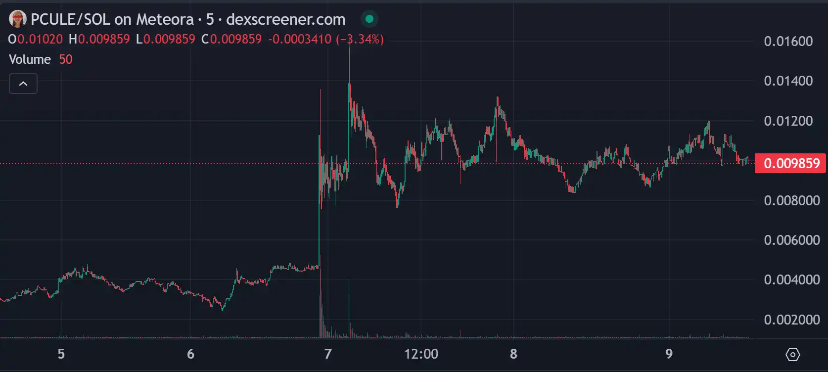此消息一经发出,便引起了市场的激烈反响。截至撰稿时,其平台代币 $PCULE 价格在 24 小时内一路冲高,实现了近 200% 的涨幅,随后横盘整理。该代币由 Polycule 创始人 krish 于 5 月 18 日 bellive 平台上发布。