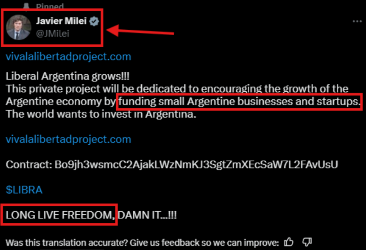 对于相关指控,Milei 本人坚决否认有任何不当行为。他声称自己并非「推广」Libra,而是「传播有关它的信息」,根据最早期 Kobeissi Letter 在 X 平台 贴文指出,Milei 曾发布与 Libra 相关的图片资讯
