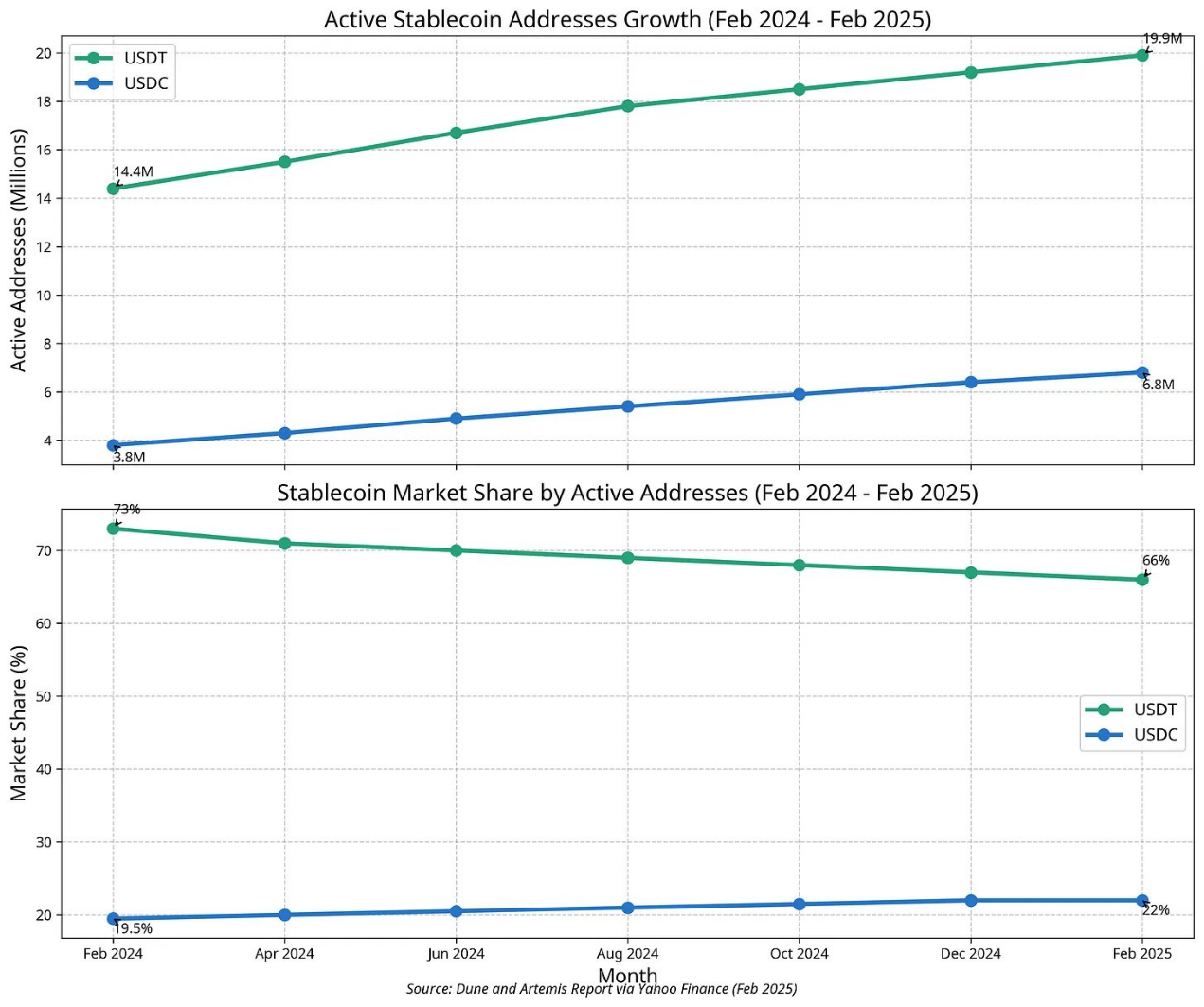 USDT 仍是街头的王者,但 USDC 却主宰着仪表盘。