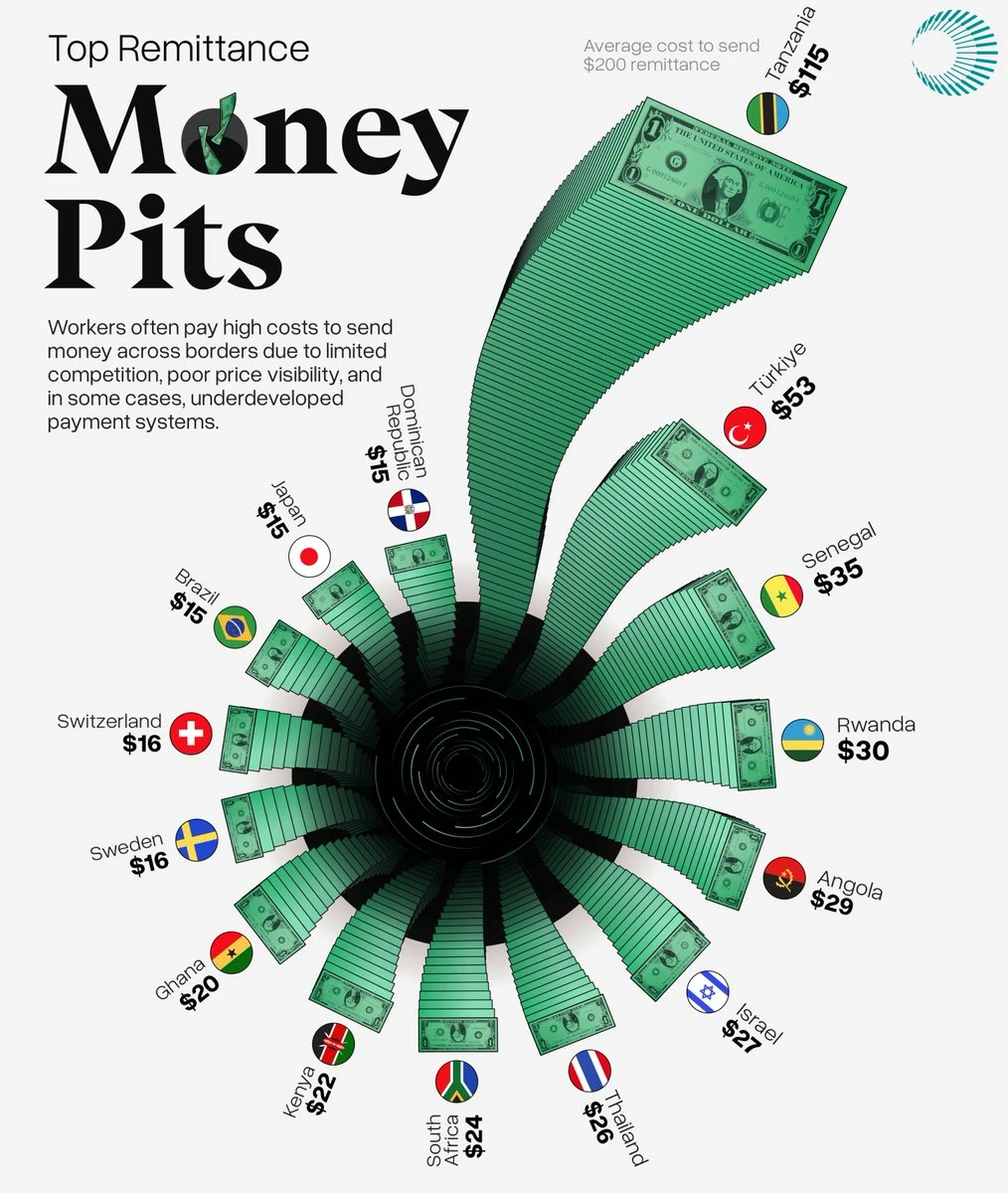 其次是「低成本」。 在新兴市场,跨境汇款费用居高不下。例如,一位父亲寄钱回家养家时,手续费可能就吃掉了转账金额的一大部分。稳定币极大地降低了这种汇款成本。