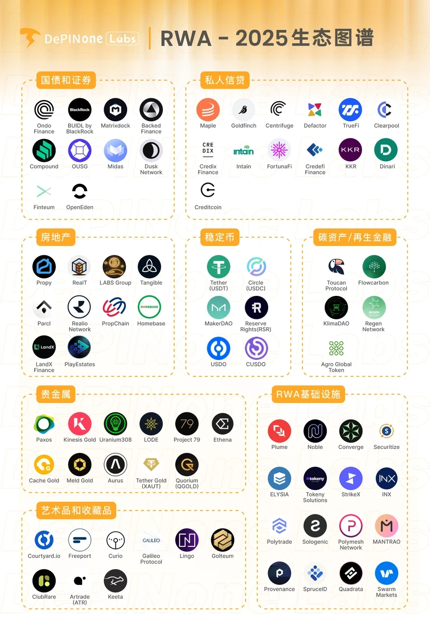 由 DePINOne Labs 编写的万字深度研报,全面盘点 2025 年 RWA 生态主要类别及代表性项目。