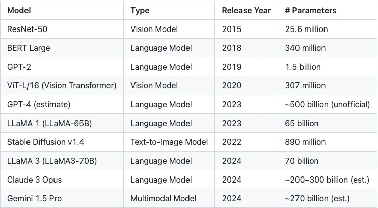 表 1 :模型参数规模的指数级增长
