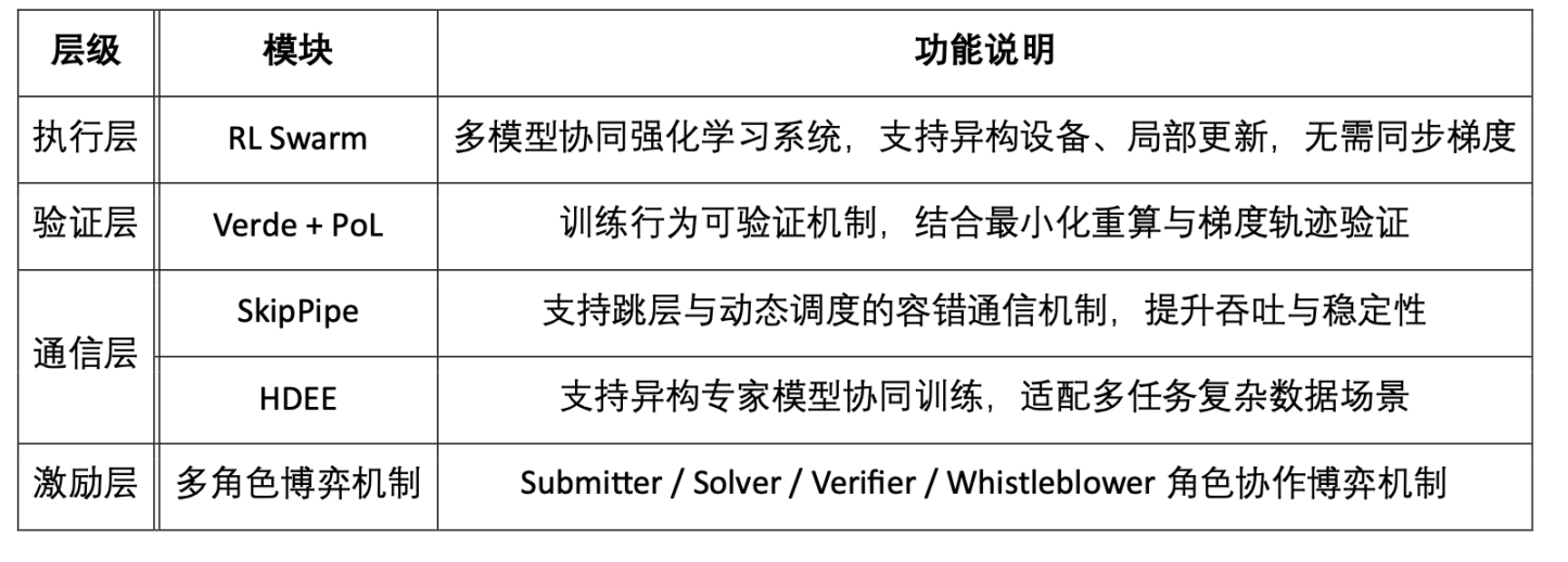 值得注意的是,Prime Intellect 的 PRIME-RL 以及 Gensyn 的 RL Swarm 正在推动 RL 从后训练微调机制向预训练主结构演进,试图构建一个以 RL 为中心、无需信任协调的协同训练体系。