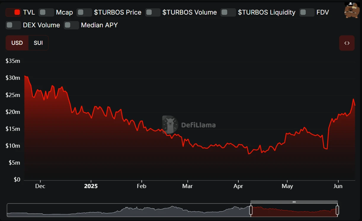 从 TVL 数据来看,自 Cetus 事件稳定后, Turbos 的资金回流速度显著加快。受市场信心恢复驱动,多个主流 Memecoin 将大部分流动性转移至 Turbos,其中包括 LOFI, 反映了市场对其技术稳定性和安全性的认可。