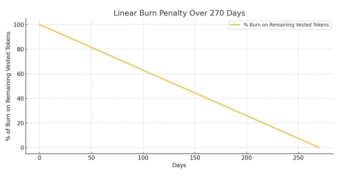 持有待解锁 NFT 用户可以选择随时申领剩余的分配额度,但这将根据剩余额度触发销毁惩罚。